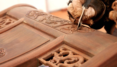 流程三雕刻工序 為了讓紅木家具看上去更美觀,在木工工序完成之后一般都會用一些或簡單或復(fù)雜的雕花來進行裝飾,也就是行業(yè)中所說的雕刻紋飾。雕刻紋飾必須在“認(rèn)榫”完成后進行,因為“認(rèn)榫”時需要修整,如果先做好雕花再開榫,紋理很難保證雕花部件都在同一平面上,而此時為了保證雕花...
